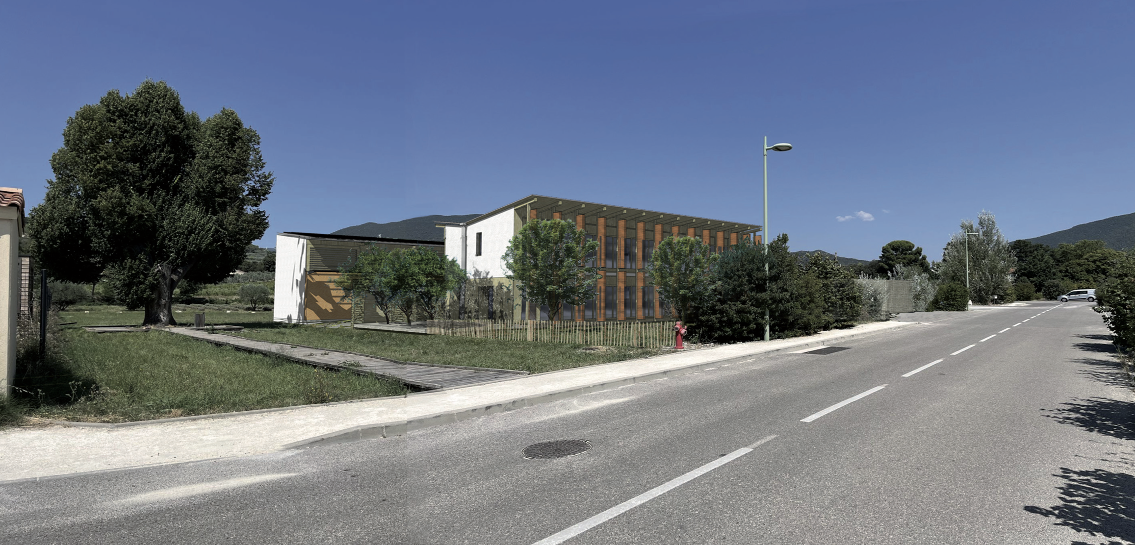 Notre association Arboretum préfigure une société coopérative. Depuis 2023, elle concocte le projet Chez Paule : construire à neuf un lieu à la ZA du Grand Tilleul à Nyons (Drôme) pour vous proposer: